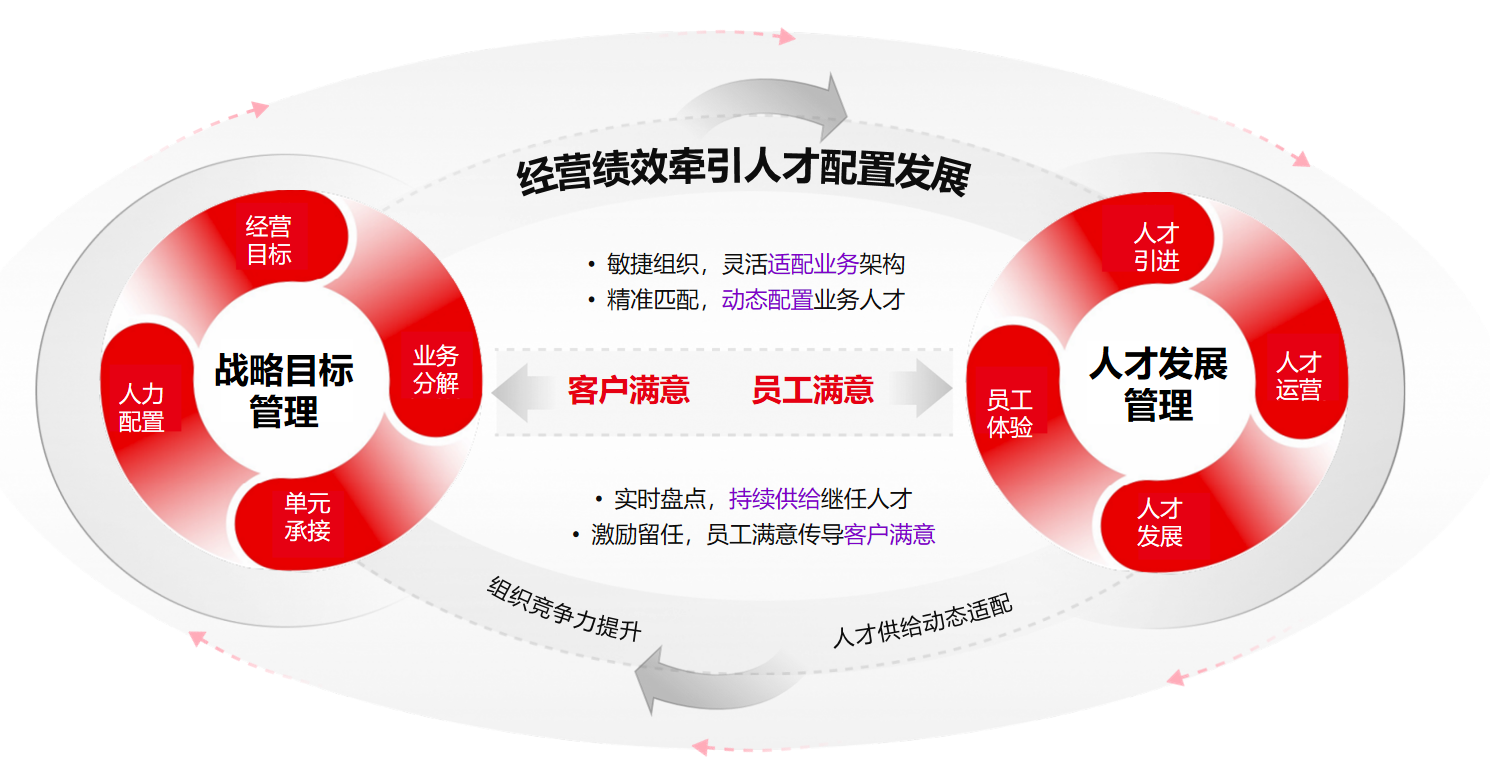 用友 HR SaaS 对业人融合的定义,并非人才单向适配业务,而是业务流与人才流的双向奔赴。业务发展决定了企业对人才的能力需求和配置方向,而精准的人才管理、有效的激励机制,又能反哺业务增长,形成「业务带动人才,人才支撑业务」的正向循环。