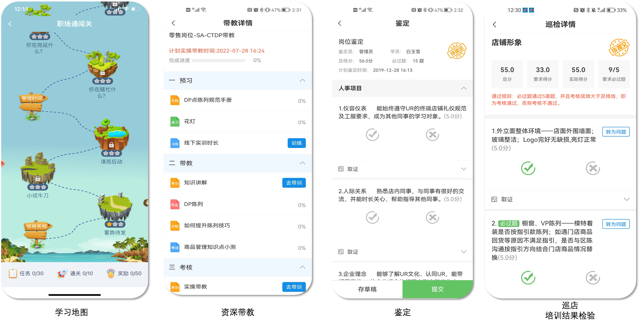招聘只是第一步,有效育人也是企业的重要课题。摒弃了枯燥的填鸭式培训,该企业转而用游戏化场景赋能员工成长。新员工一入职就有专属学习闯关地图,把培训内容变成一个个可攻克的关卡,再配上激励机制,让学习从“任务”变成“乐趣”。而区域经理的巡店鉴定,又能把培训成果量化考核,确保学到的技能真能落地到门店服务里,形成学练考用的完整闭环。